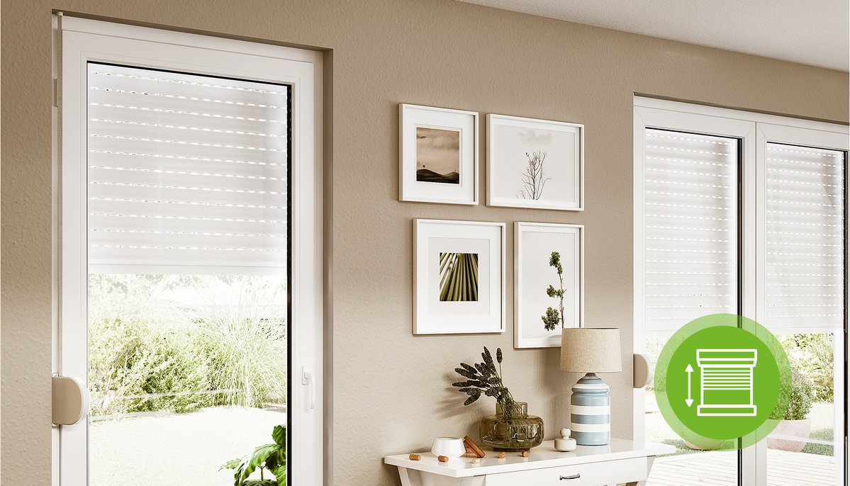 Nutzen Sie als innere 'Ergänzung' zu Rollläden ein Plissee oder Gardinen, um jedem Fenster einen individuellen Lookzu verleihen. Mit Gardinen können Sie Farbe in den Raum bringen, wobei ein Plissee für einen lichtdurchfluteten Sichtschutz bei hochgezogenem Rollladen sorgen kann. Jalousien lassen sich in vielen Farben mit wenigen Handgriffen am Fensterrahmen befestigen. Ist der Rollladen hochgezogen, können Sie Sicht- und Sonnenschutz auf diese Weise bedarfsgerecht regeln.